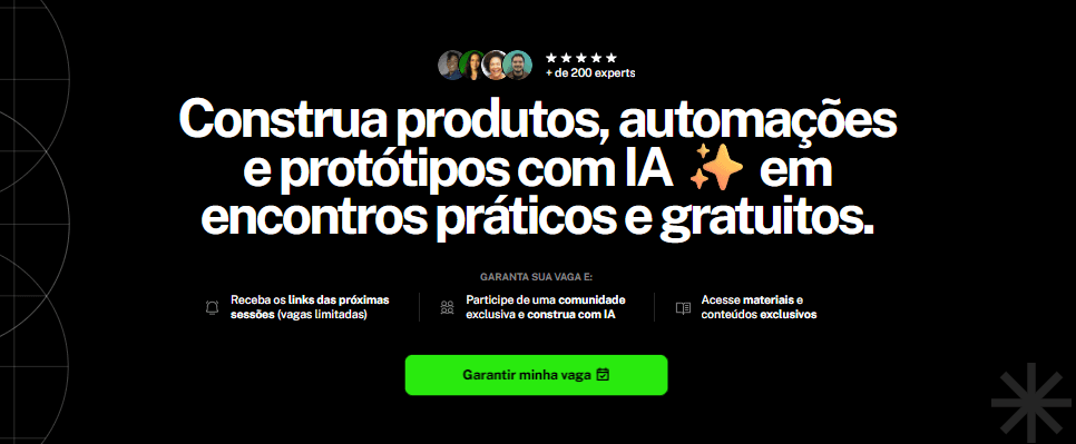Construa produtos, automações e protótipos com IA ✨ em encontros práticos e gratuitos.