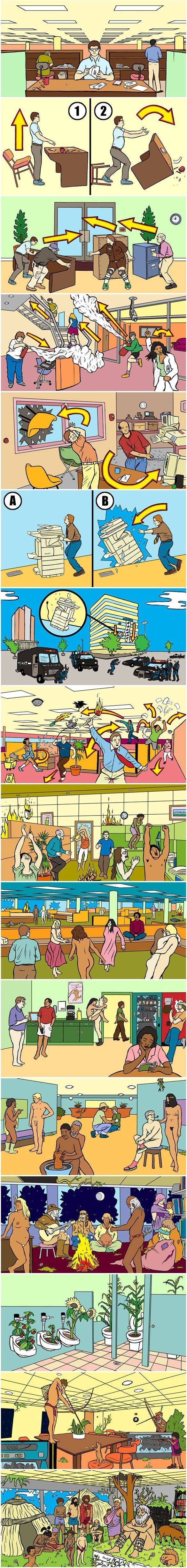 Se notar, a maioria das coisas que te cerca foi produzida por seres humanos. Do dispositivo que você está usando para ler esse artigo, da roupa que veste às arvores que foram plantadas na rua. E se nada disso existisse? E se não existisse mais roupa, relógio, celular, papel, onde estaríamos? Reflita um segundo sobre isso com esses quadrinhos: