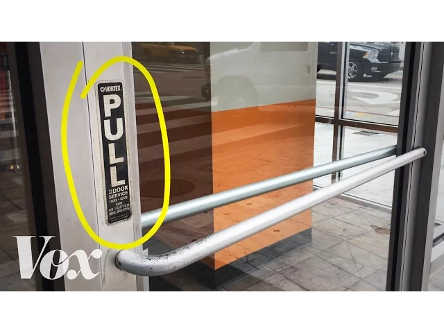 Você dá de cara com uma porta e precisa abri-la para seguir adiante. Quando você empurra a porta, na verdade, percebe que precisa puxá-la para abrir. Quantas vezes você já passou por isso? Você, então, encontra uma outra porta e vê um puxador gigante. Sua intuição diz que aquele puxador serve para puxar, mas era para empurrar. Então, para que ter um puxador?!