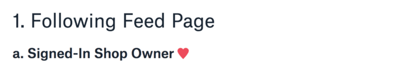 “1. Página para seguir o feed; a. dono de loja conectado”.