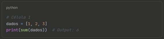Se você alterar para dados = [10, 20, 30] mas não reexecutar, o output continuará mostrando 6. Você e outros leitores podem tomar decisões baseadas em informação incorreta.