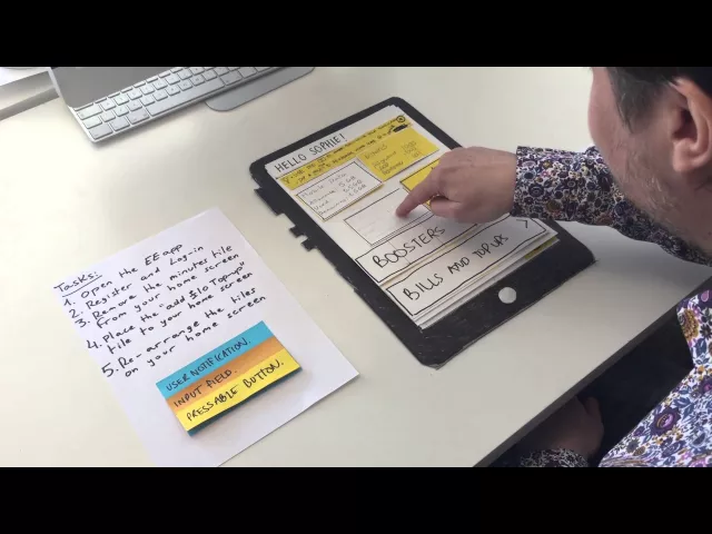 A cada toque em um botão representado no papel, alguém do time de UX precisa ir trocando as telas para criar essa experiência de progressão de interação. Essa é uma técnica bastante comum para validar ideias e testar a experiência de usuário.