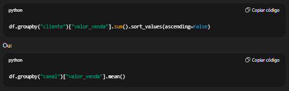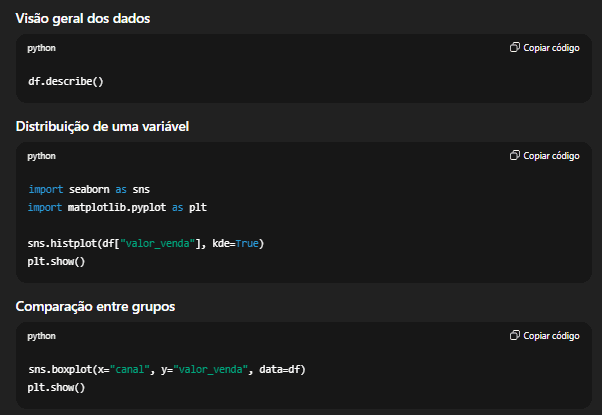 Perguntas como “o que mais impacta vendas?”, “quais clientes geram mais valor?” ou “onde estamos perdendo dinheiro?” precisam ser traduzidas em métricas, recortes e análises específicas. Não existe uma função pronta que responda isso. O analista precisa estruturar o problema antes de escrever código.
