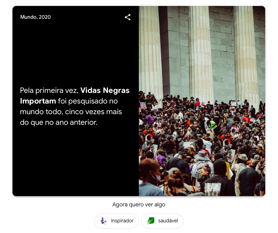 É importante destacar que a base de dados para abastecer a campanha Year in Search é o Google Trends, famosa e importante plataforma de consultas da empresa. Por lá, muitas estratégias de conteúdo são planejadas, graças à possibilidade de detectar o que tem despertado o interesse de audiências variadas.