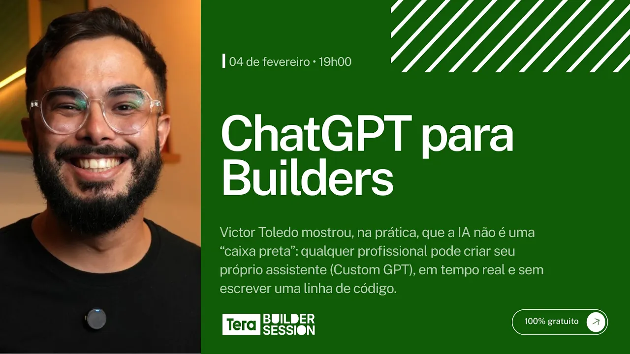 Nesse curso “ChatGPT para Builders”, o aluno vai construir workflows estruturados de IA para o dia a dia de trabalho, e não só prompts soltos.