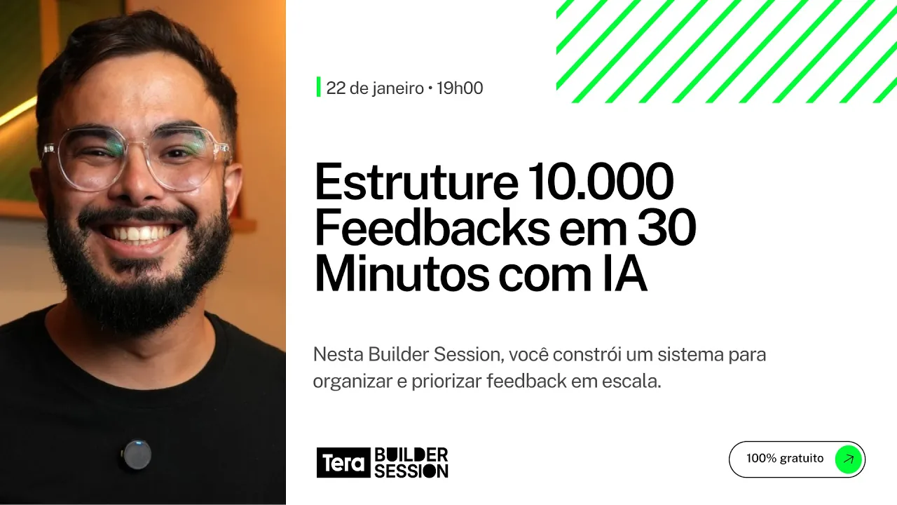 Em 2026, coletar feedback não gera mais vantagem competitiva; o diferencial está na velocidade da resposta. "Feedback em escala não pede leitura. Pede sistema". Se o seu time ainda gasta semanas "lendo" reviews e tickets, você está decidindo por intuição enquanto o concorrente já operou a solução. Esta Builder Session é o seu ponto de partida para transitar da inteligência artesanal para uma infraestrutura de pensamento que escala sua capacidade de ouvir e decidir.