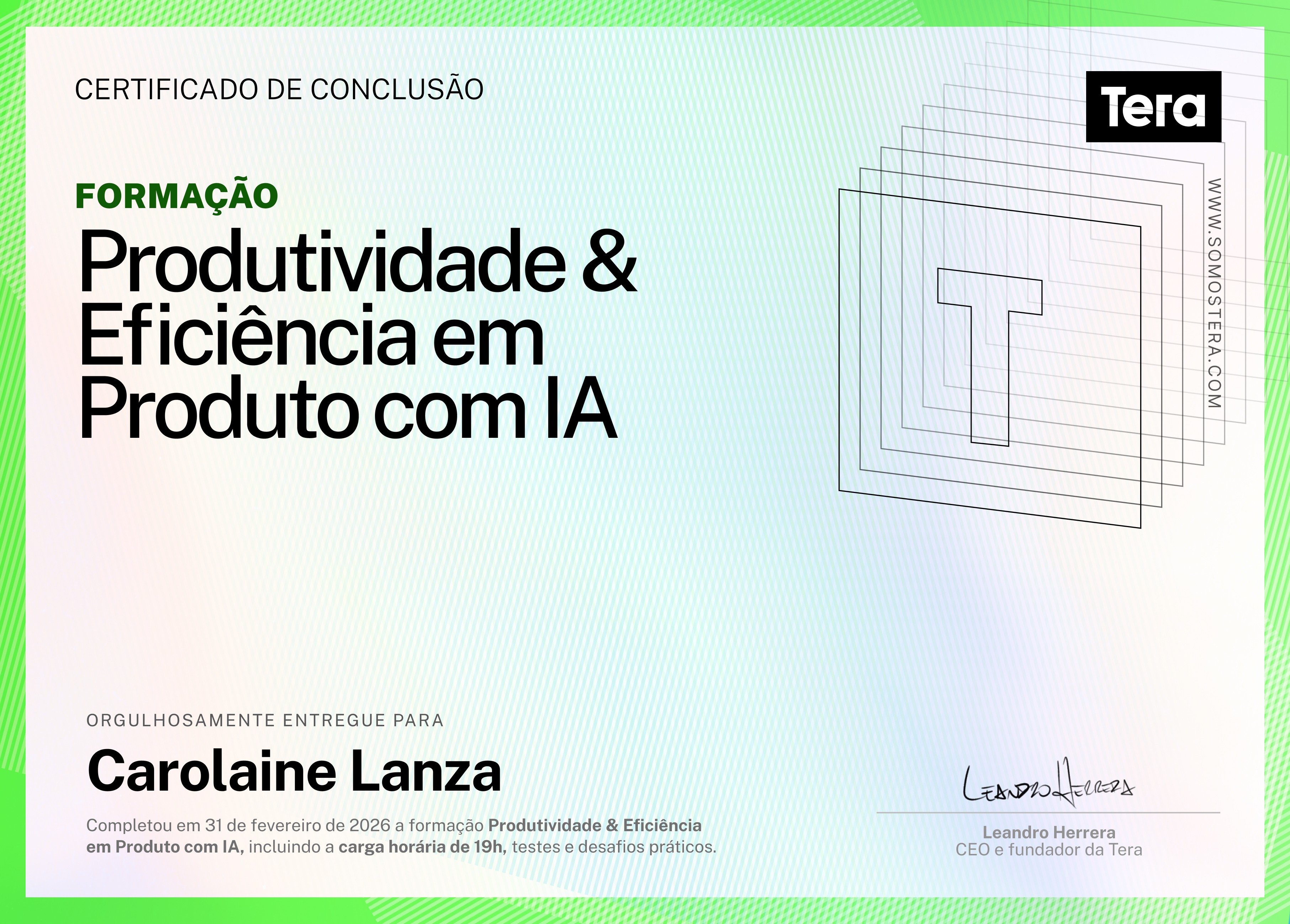 Como funciona o curso de Produtividade & Eficiência em Produto com IA da Tera?